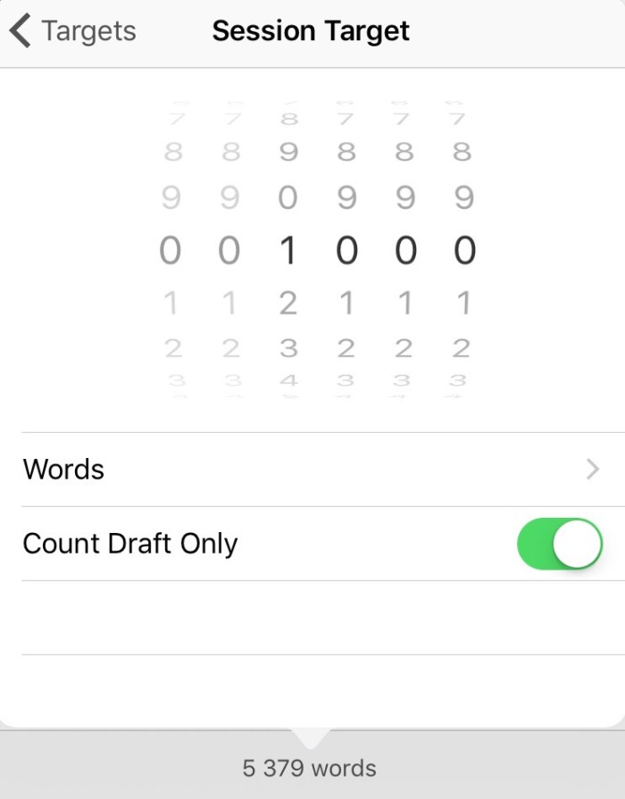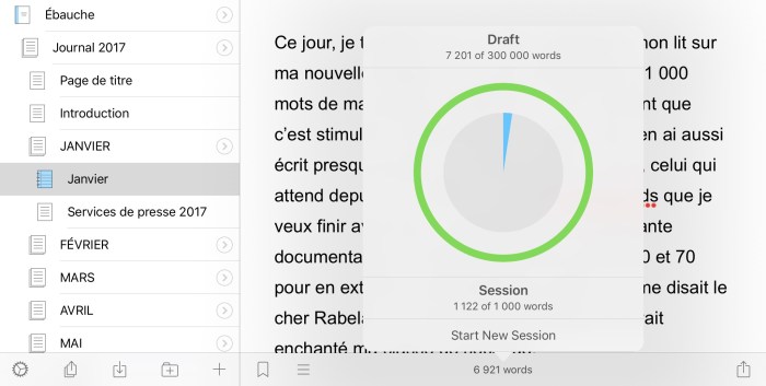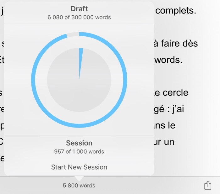 On règle l’objectif de la nouvelle session : ici j’ai mis 1 000 mots.