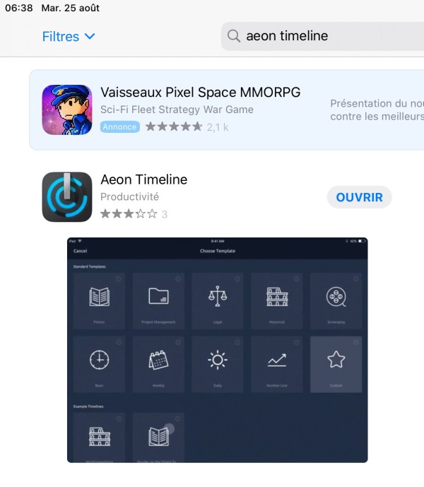 Au mois de février, je l’ai laissé reposer pour écrire le guide Aeon Timeline plus simplepourles francophones, ce qui m’a semblé alors prioritaire, eu égard aux questions que me posaient des camarades scrivonautes.