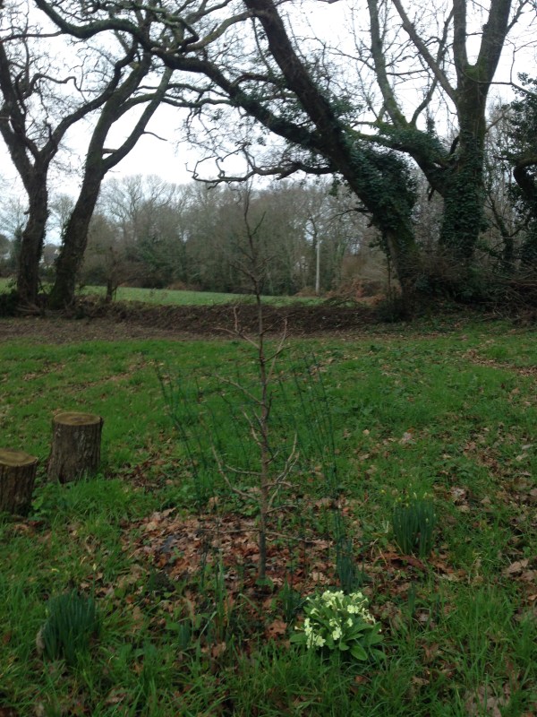 Premières fleurs. Primavera. Au pied du liquidambar planté en hommage au peintre abstrait Yves Samson qui a créé de belles œuvres à Kerantorec.