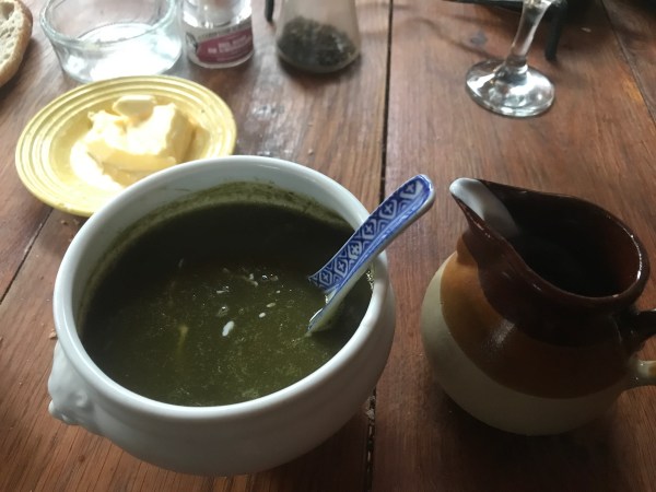 Pour utiliser la machine à soupe, il n’est pas utile de suivre une recette. On peut prendre tout de suite l’habitude de se fier à son instinct. La base est de pouvoir commencer par un oignon émincé, des légumes verts ou des légumes rouges, selon les saisons, coupés en petits morceaux, un liant comme deux pommes de terre aussi en morceaux, ou des flocons d’avoine ou du riz ou des pâtes, on assaisonne selon ses goûts, sel, poivre, ail, etc. On couvre d’eau au minimum ou au maximum de la machine. On y met ce qu’on a sous la main et on invente.