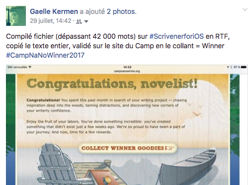 Je peux donc vous assurer que Scrivener marche vraiment bien et que son investissement (léger par rapport à celui de Word) vous permettra de faire des publications fructueuses, avec des formatages en epub ou doc en quelques clics, sans passer par des logiciels extérieurs de conversion d’ebooks.