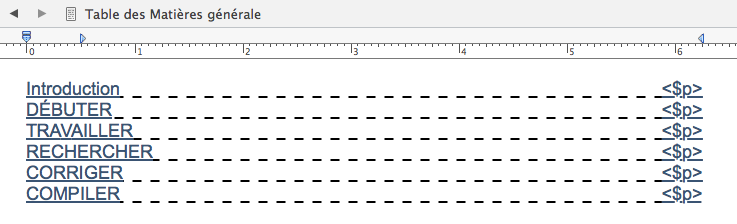 La table des matières apparaît avec le numéro des pages. Ça marche !