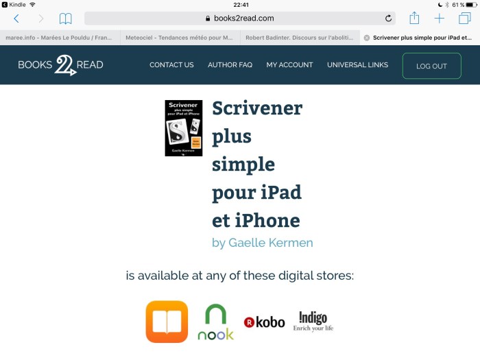 J’avais dans l’idée d’écrire une nouvelle version du guide Scrivener iOS en l’illustrant par des écrans en français. Au vu de ma belle expérience en la matière, j’ai eu envie d’aller plus loin que ce premier guide et d’écrire un livre qui permettrait aux auteurs d’utiliser leur iPad et leur iPhone autrement que pour y prendre des notes ou suivre les réseaux sociaux.