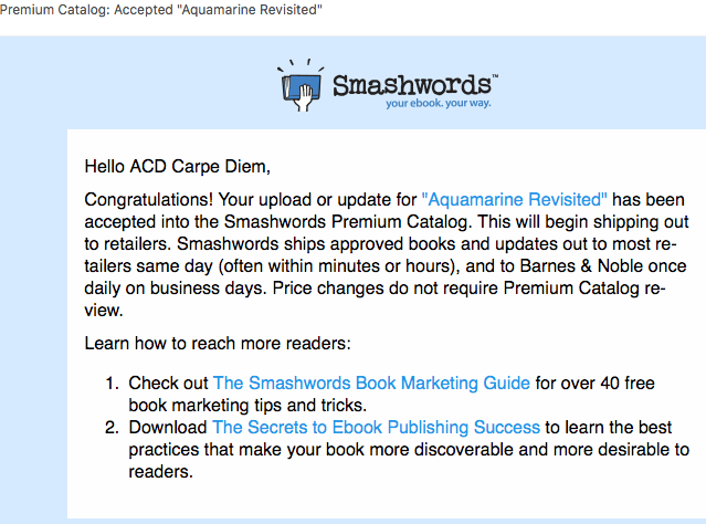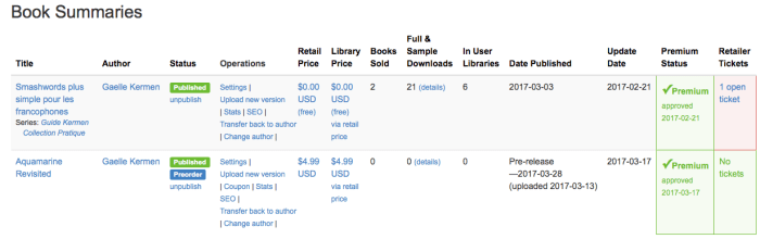 Il est publié en ebook mobi Kindle chez Amazon et en ebook ePub chez Smashwords, qui le diffuse chez Apple et Kobo, etc.