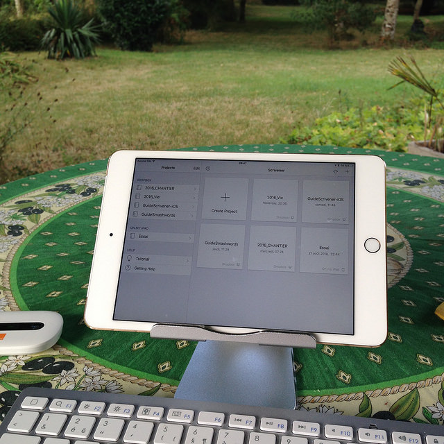 Ne croyez pas que je passe mes journées derrière mes ordinateurs. Non, je ne travaille jamais plus de quatre heures par jour, sauf les quelques jours avant la sortie des ebooks, où il m’arrive de travailler entre cinq et six heures. Je me suis bien organisée et vis à mon rythme, privilège de l’âge, que chacun devrait avoir. Et, désormais, avoir mes projets en cours sur Dropbox pour y accéder depuis mon Mac de bureau ou depuis un de mes mobiles, iPad mini 4 ou iPhone 5c, ça fait toute la différence du monde. Tout est devenu clair, simple à gérer et efficace. L’écriture n’est plus un rêve inaccessible, elle est devenue une réalité concrète et vivante.